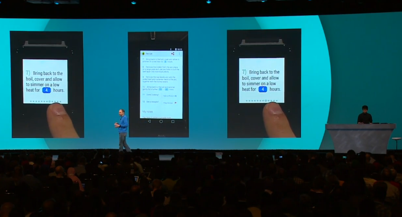 Anschließend führte Google die Sprachsteuerung der Uhren und einige Apps vor, zum Beispiel eine mit Schritt-für-Schritt-Kochanleitungen.