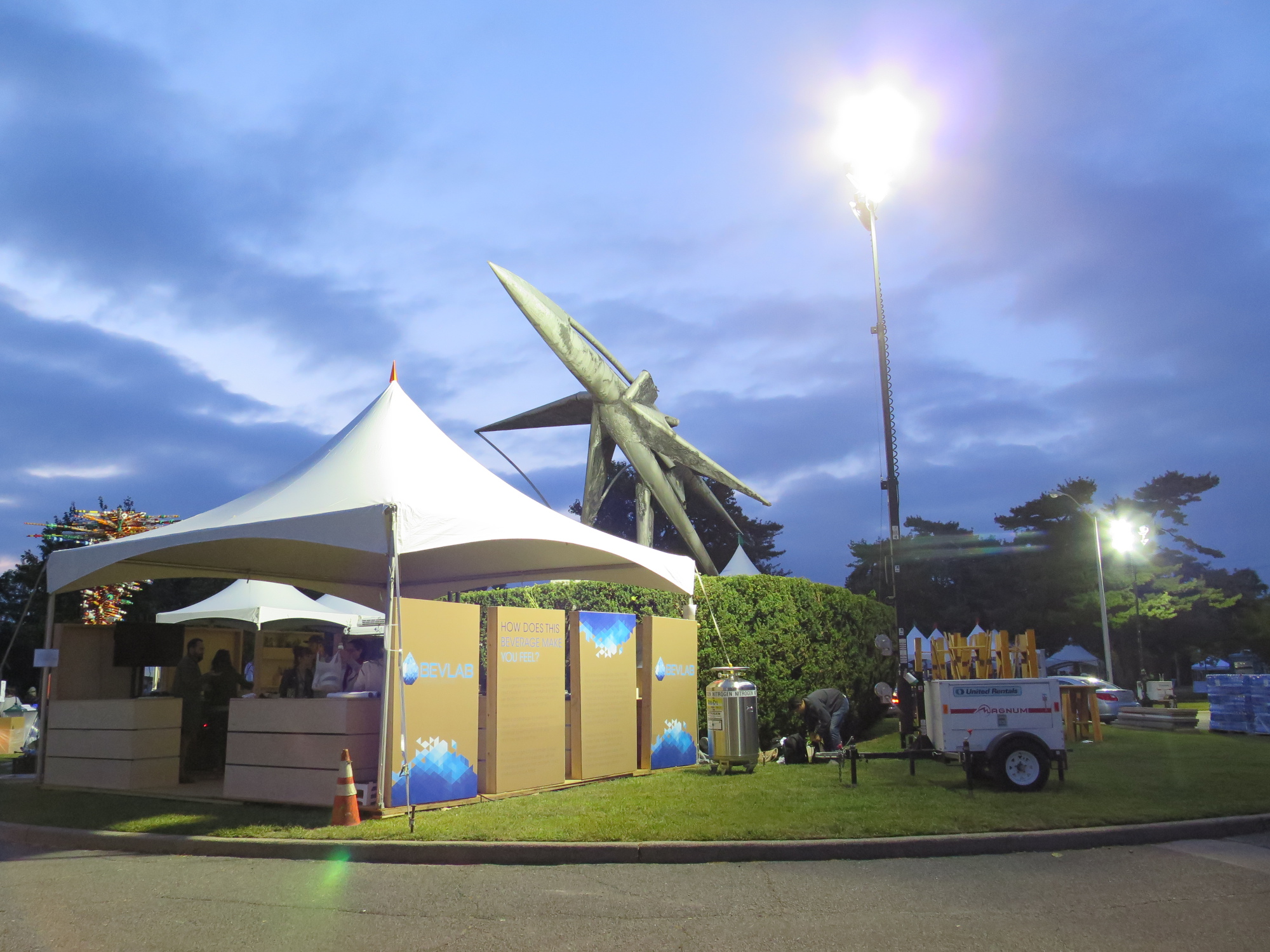 Das BEVLAB wird mit Getränkemischungen experimentieren. Darüber thront ein Kunstobjekt, das wohl der Weltausstellung 1964 entstammt.