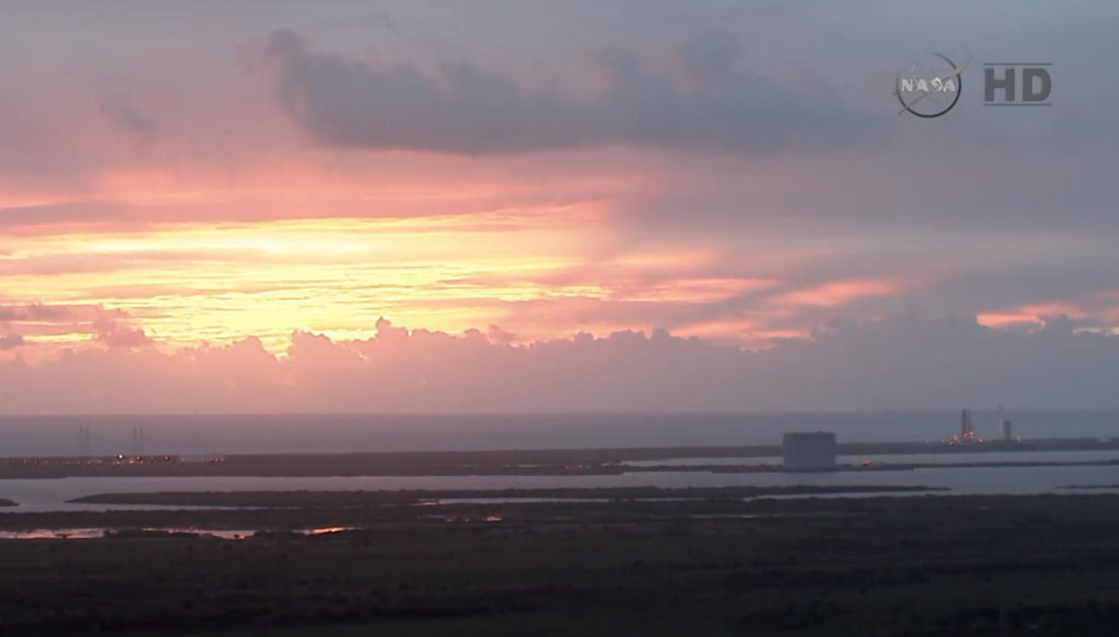 Das Startgelände in Cape Canaveral in der Morgensonne des Starttages