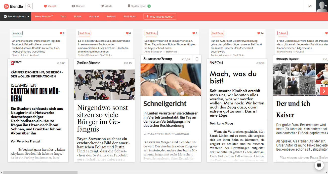 Nutzer können sich aber auch direkt die beliebtesten Artikel aus allen Medien auflisten lassen.