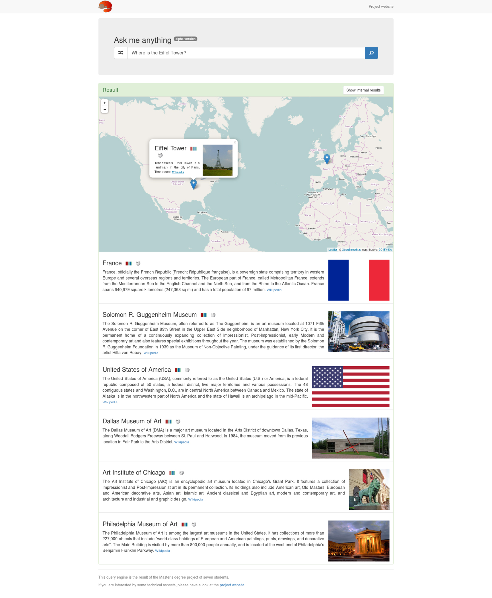 Die Wikimedia Foundation arbeitet an neuen Techniken, den Wissensschatz in Wikipedia-Artikeln aufzubereiten. Doch die Aufgabe ist komplex: Die Frage nach dem Standort des Eiffelturms zeigt auch einen Nachbau in den USA an.