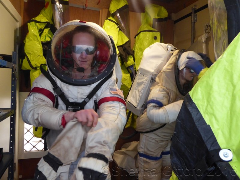 FĂŒr die Forschungs-, Versorgungs- und SpaziergĂ€nge mussten die Teilnehmer immer ihre RaumanzĂŒge anziehen