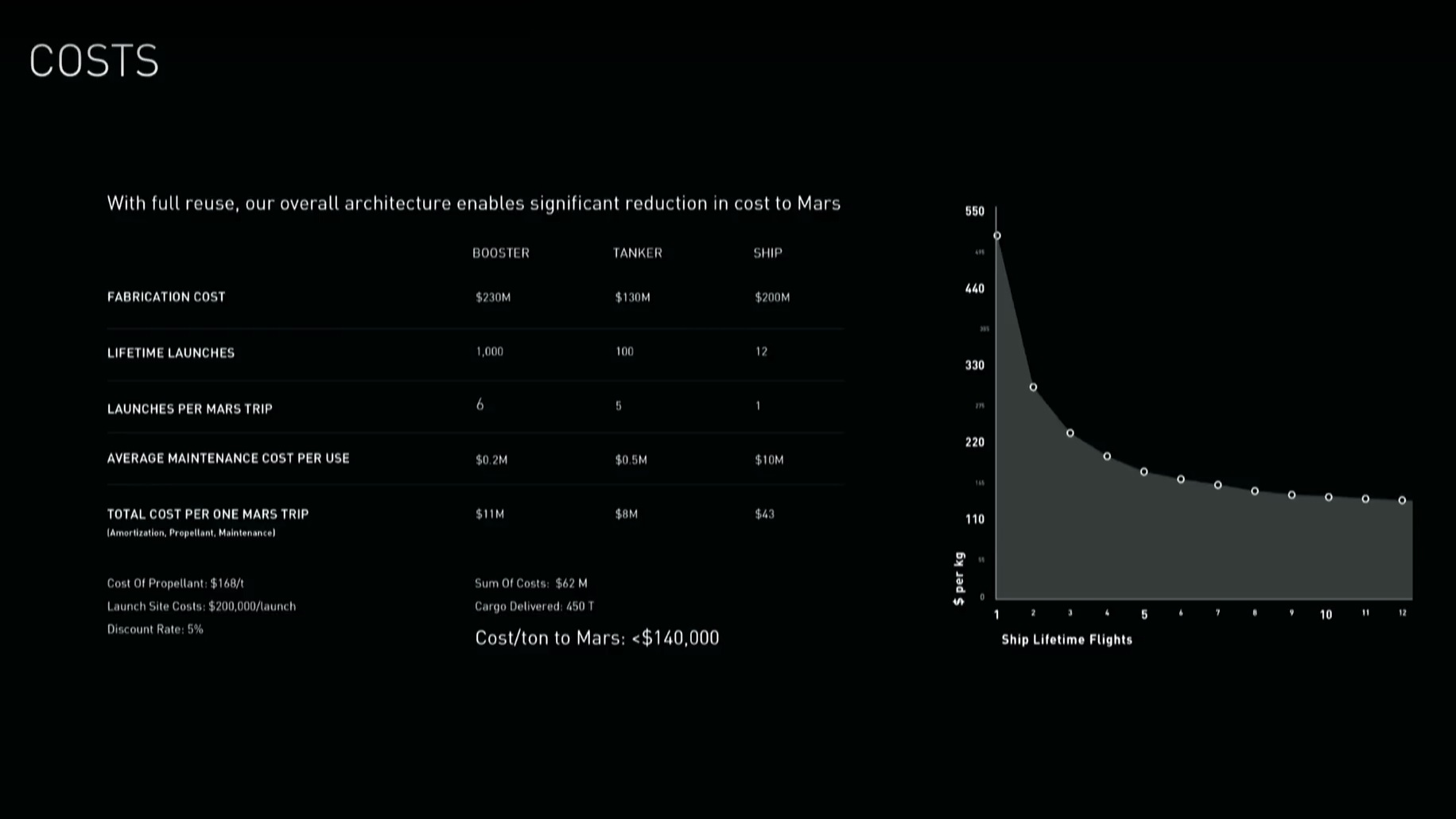 Durch die Wiederverwendung von Boostern, Tankern und Raumschiffen will SpaceX ĂĽber die Zeit die Kosten fĂĽr die MarsflĂĽge minimieren.