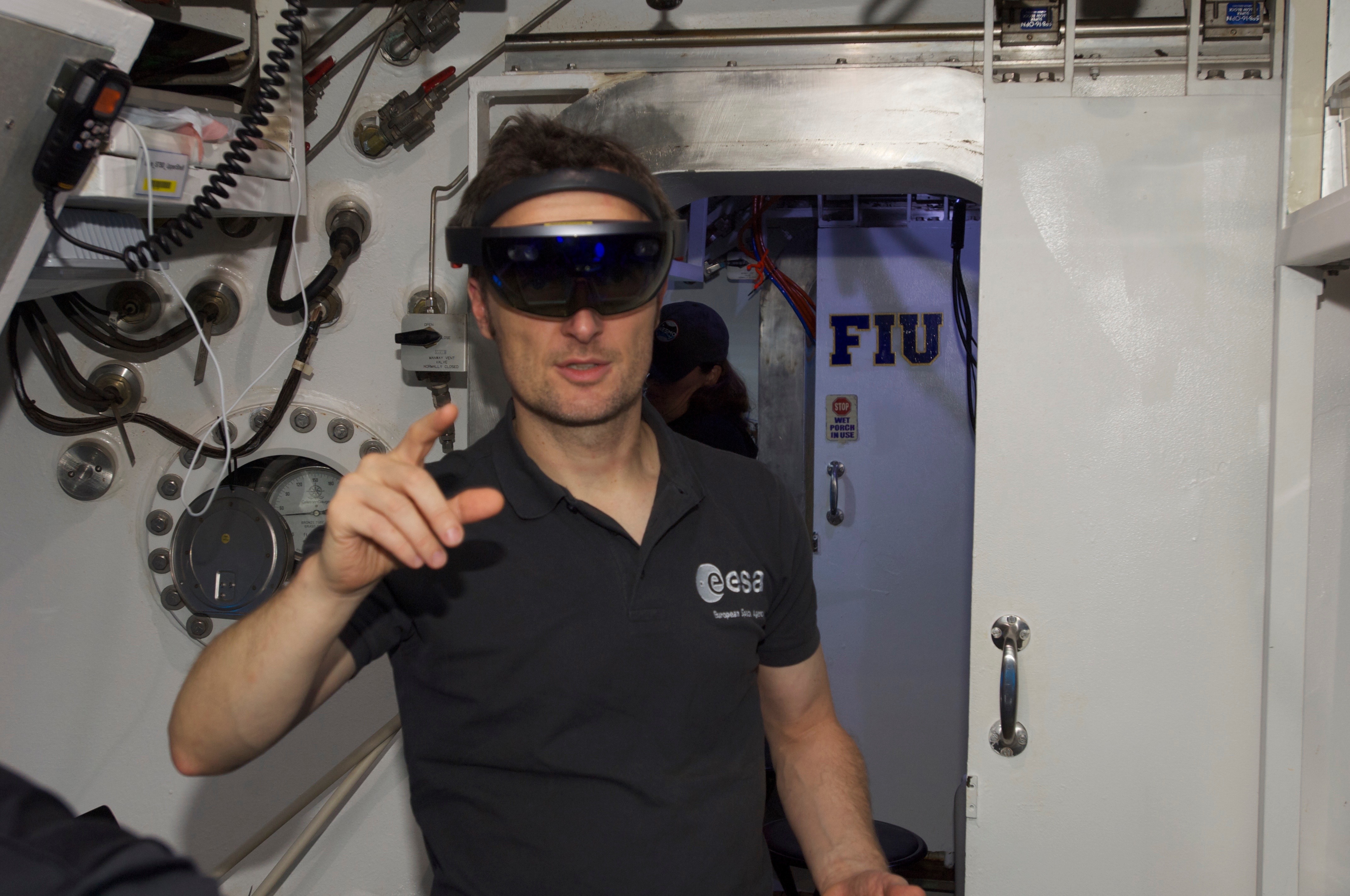 Maurer bei einem Test der Hololens