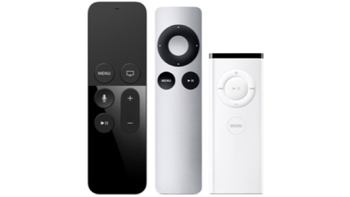 Alle drei Apple-TV-Fernsteuerungen im Ăśberblick. Von neu (links) bis ganz alt (rechts).