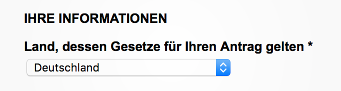 Wählen Sie jetzt Ihr Herkunftsland aus. Hier gilt das Land des Wohnsitzes, nicht das Land der Geburt. Wenn Sie z. B. hauptsächlich auf Mallorca wohnen, müssen Sie Spanien angeben.