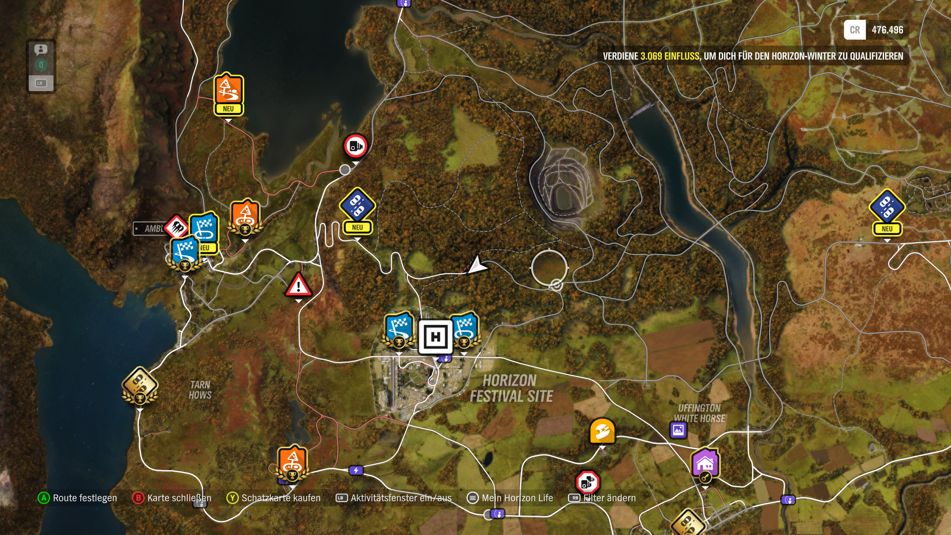 Auf der Karte findet man ĂĽberall Rennen oder besondere Herausforderungen.