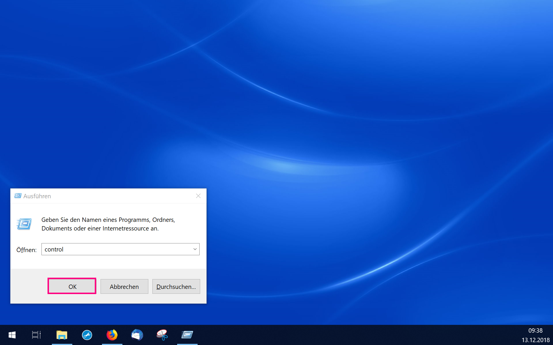 Öffnen Sie per Druck der Tastenkombination [Windows] + [R] das Ausführen-Menü. Geben Sie "control" ein und bestätigen Sie mit "OK".