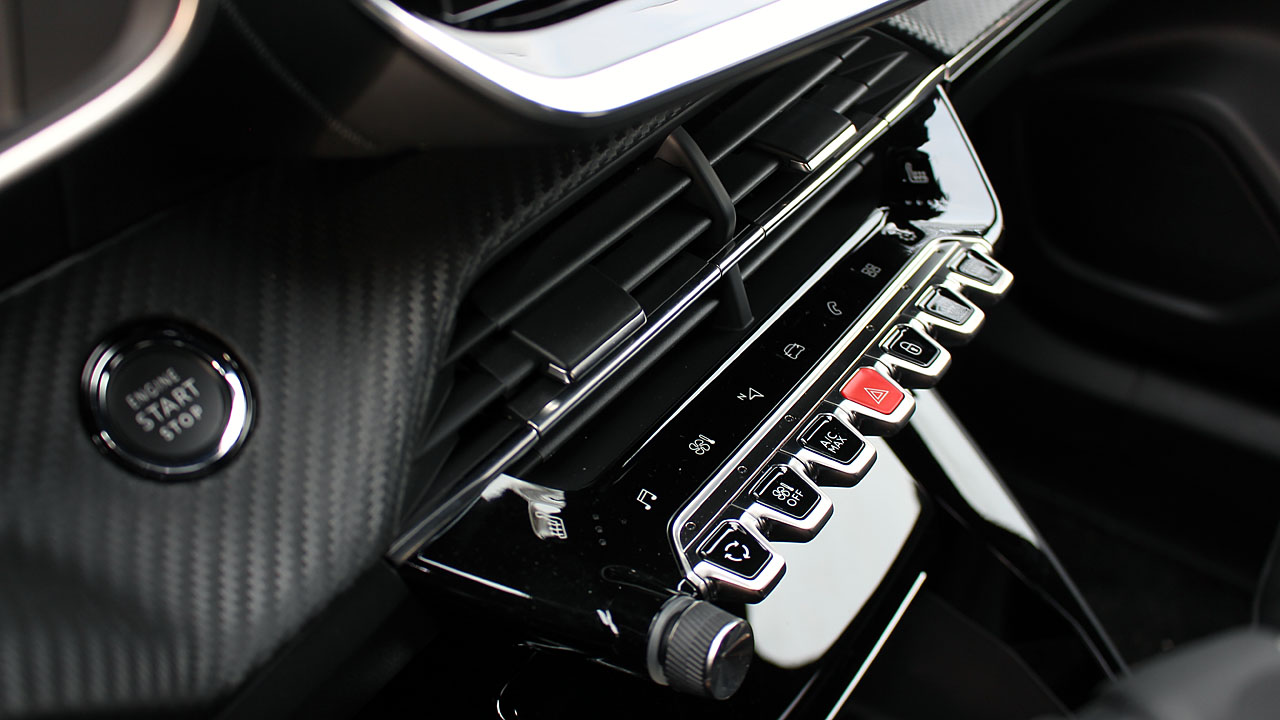 Hinter der Knopfleiste liegt eine mit berührungssensiblen Flächen. Die Thematik scheint willkürlich.