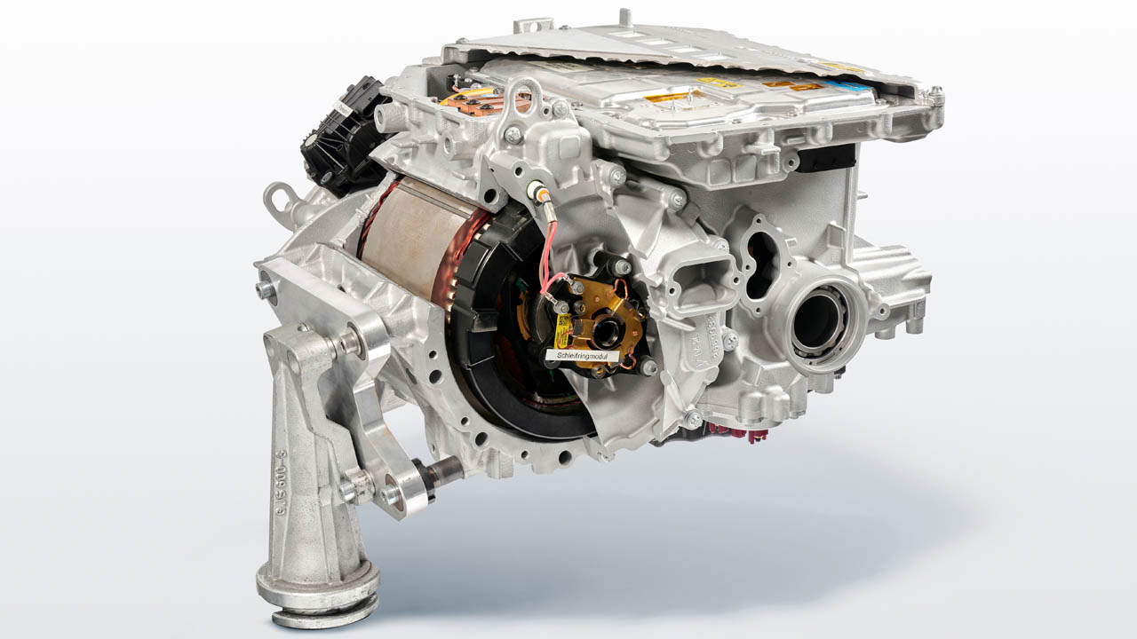 Ein teilgeschnittener Antrieb zeigt links vorn den Elektromotor. BMW unternimmt den Versuch, Kritikern der E-Mobilität etwas Wind aus den Segeln zu nehmen. Auf Seltene Erden wird beim E-Motor verzichtet.