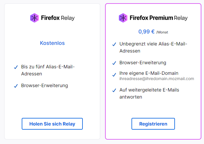 Firefox Relay: Basis- und Premium-Version
