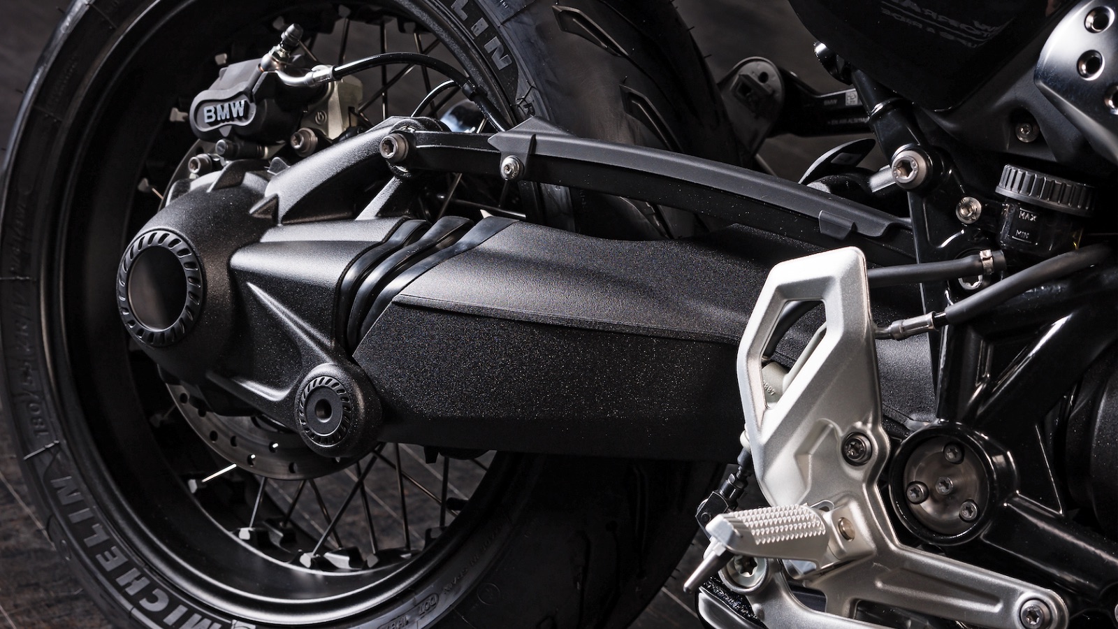 An der R12 R NineT kommt eine neue Einarmschwinge zum Einsatz. Es bleibt natürlich beim Kardanantrieb, wie es sich für einen Boxer von BMW gehört.