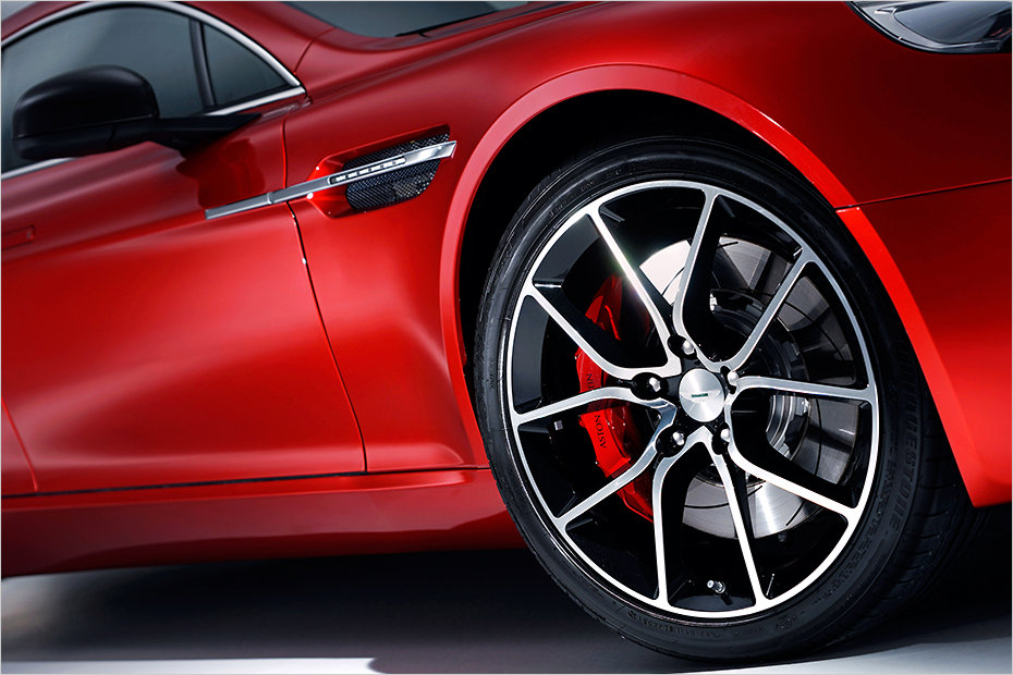 Rote Bremssättel schimmern hinter den Speichen hervor.