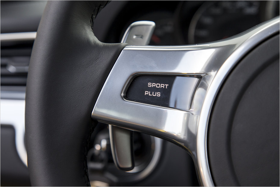 Am Lenkrad gibt es eine Anzeige, die aufleuchtet, wenn der Sport-Plus-Modus aktiv ist.