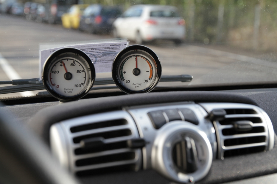 Vereinfachter Batteriespannungsanzeiger und vereinfachtes Amperemeter der Traktionsbatterie. Da schaut eh keiner drauf, die Uhr ist viel wichtiger.