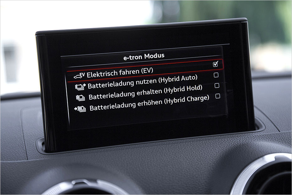 Vier Betriebsarten kennt der e-tron. Im EV-Modus wird - auĂźer bei Kick-down - rein elektrisch gefahren.