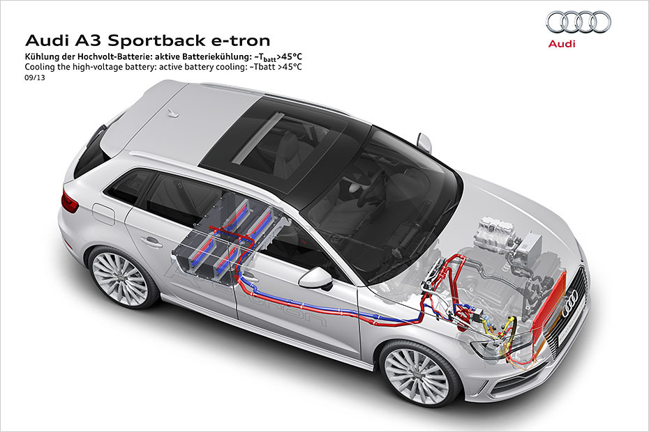 Eine Besonderheit des e-tron ist die Flüssigkühlung für Batterie und E-Motor.