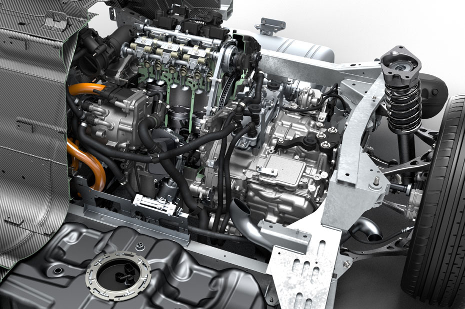 Hier sitzt der Motor quer im Heck und wird von einem stählernen Turbolader versorgt.