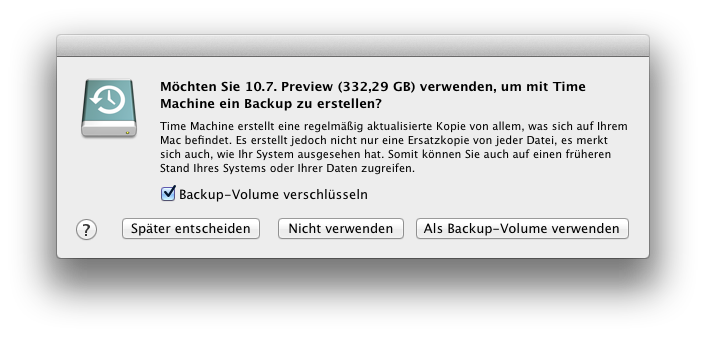 Auf Wunsch verwendet auch Time Machine die neue VerschlĂĽsselung.
