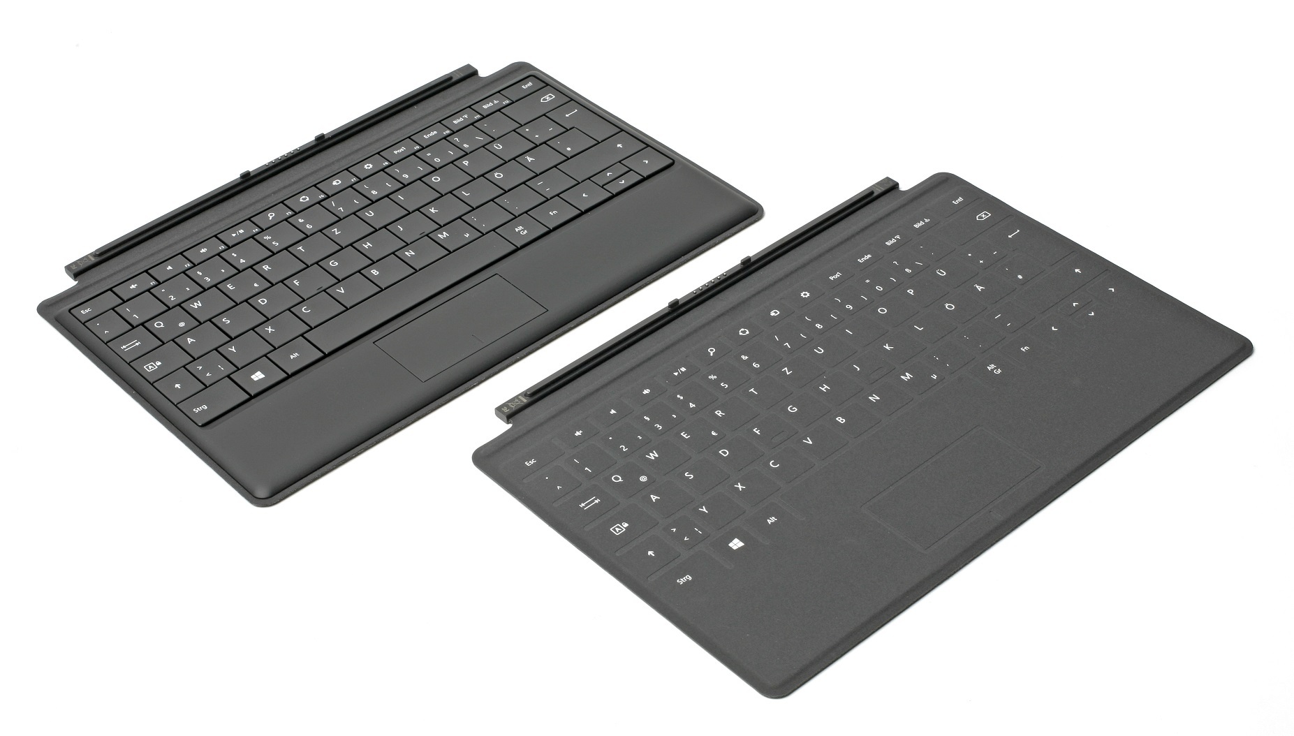 Microsoft bietet zwei Tastaturen fĂĽr das Surface: Das "Touch-Cover" (unten), eine Art Folientastatur sowie als "Type-Cover", eine richtige mit Tastenhub.