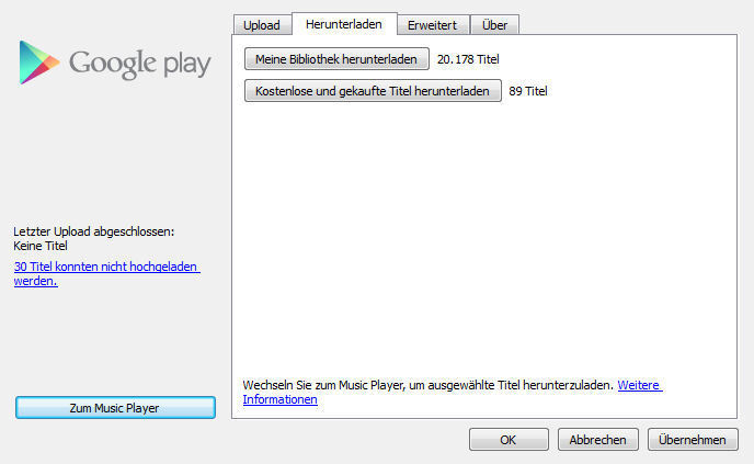 Der Music Manager ermöglicht die Synchronisation lokaler Musikbibliotheken mit der Cloud und das Herunterladen in der Cloud gespeicherter Musik.