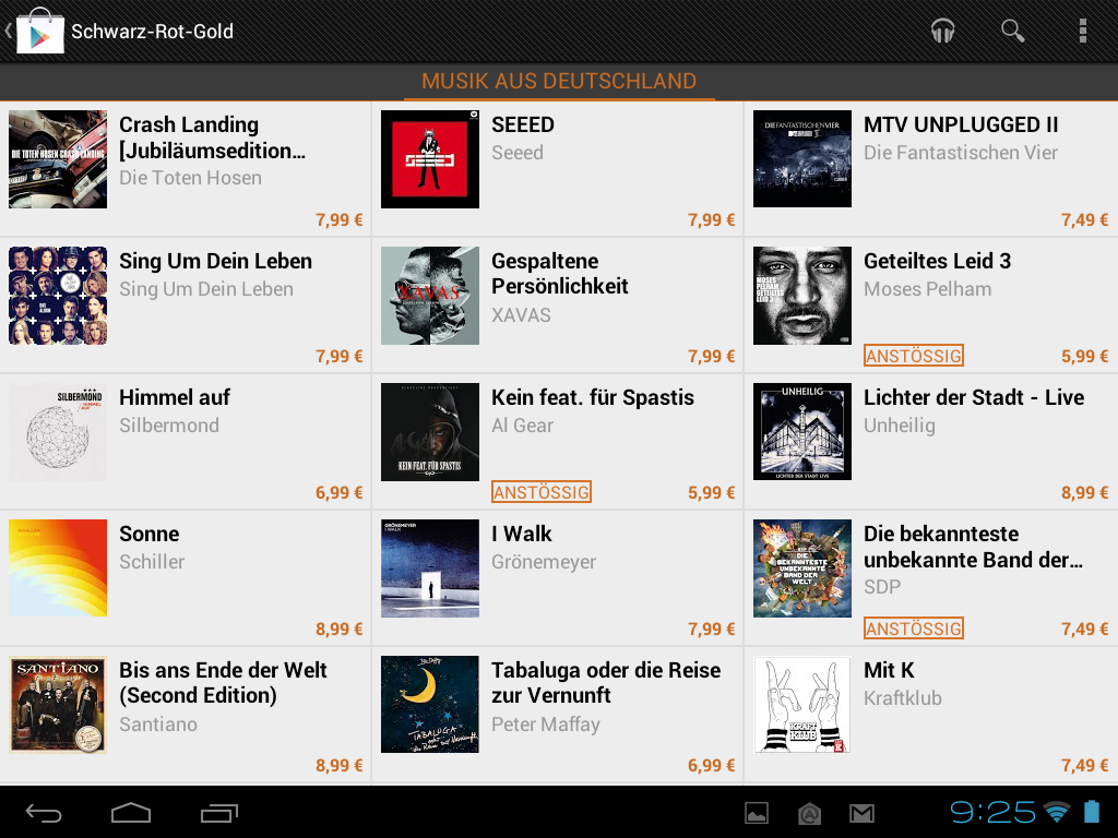 "Schwarz-Rot-Gold": Auch brandneue Alben vieler deutscher Künstler gibt es zumindest anlässlich des Deutschlandstarts von Google Music deutlich günstiger als bei den Mitbewerbern.
