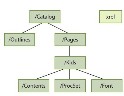 Zunächst muss ich meine Kenntnisse über das PDF-Format etwas auffrischen. Ich erinnere mich noch dunkel, dass ein PDF-Dokument aus verschiedenen Objekten zusammengesetzt ist, die eine Baumstruktur bilden. Jedes Objekt beschreibt dabei einen Aspekt des Dokuments, beispielsweise ist der Inhalt einer Seite in einem Objekt abgespeichert und die Informationen zur Schriftart und -größe in einem anderen.