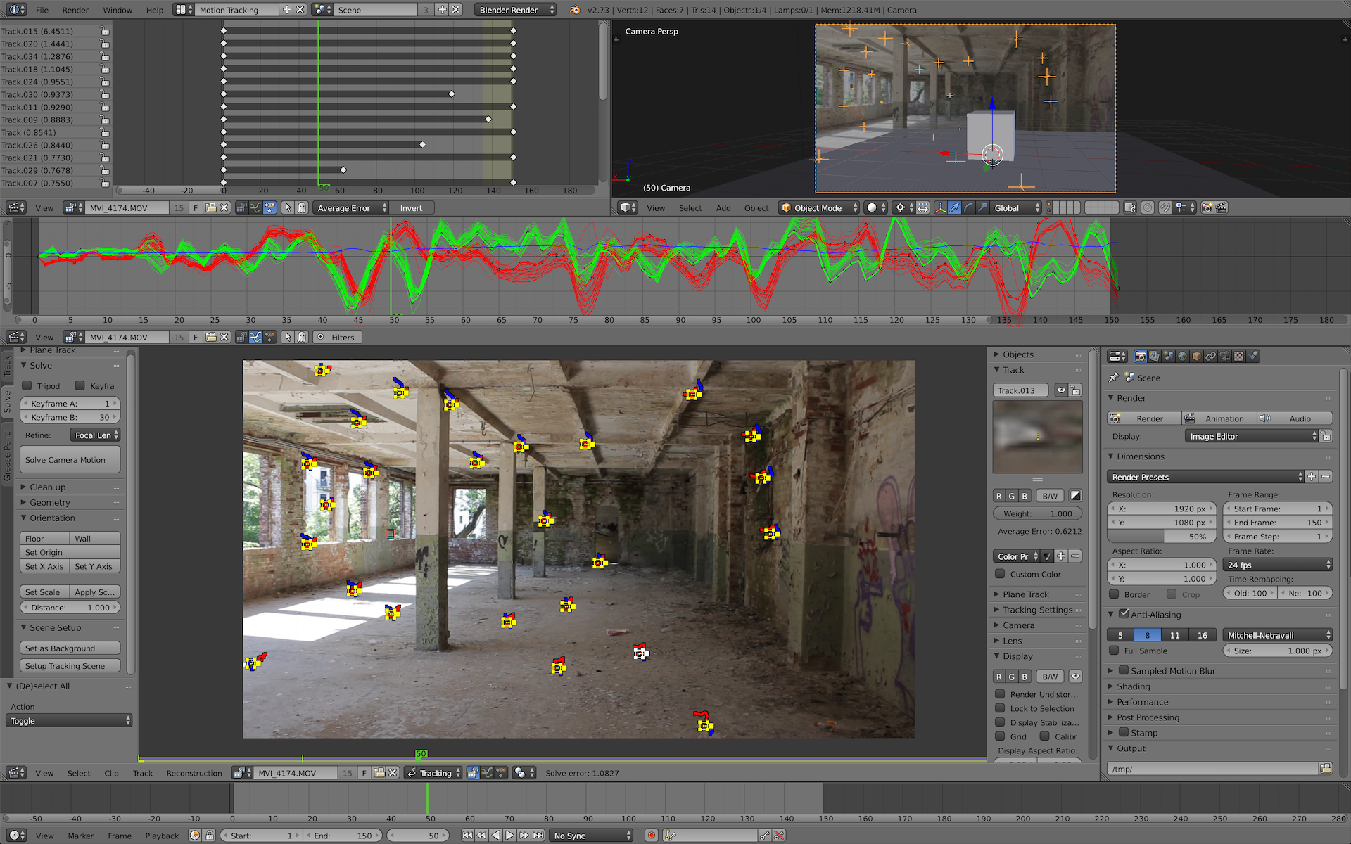 Motion Tracking benutzt einen neuen Algorithmus, der anhand der Bewegungen eines Markers schätzt, in welcher Gegend das Feature im nächsten Frame liegen könnte. Das schränkt den Suchraum und damit den Rechenaufwand deutlich ein. Das Editor-Layout für Motion Tracking wurde zudem überarbeitet und zeigt jetzt deutlich mehr Editoren an.