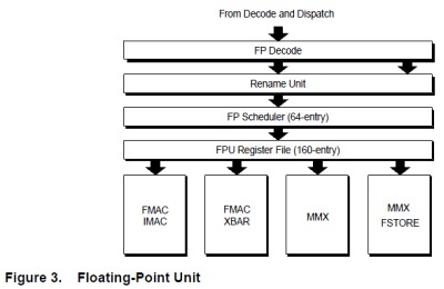 Demnach verspricht AMD durch die Load-Execute-Befehle, die ein Datum einlesen und sofort verarbeiten, besonders große Geschwindigkeitsvorteile. Sie gibt es auch für SIMD-Befehle und sollen dort wiederum vor allem bei "Misaligned"-Zugriffen unnötige Wartezeiten vermeiden. Durch den "dichter gepackten" Code sollen aber auch der Befehls-Cache und indirekt auch der FP-Scheduler effizienter arbeiten. (ciw)