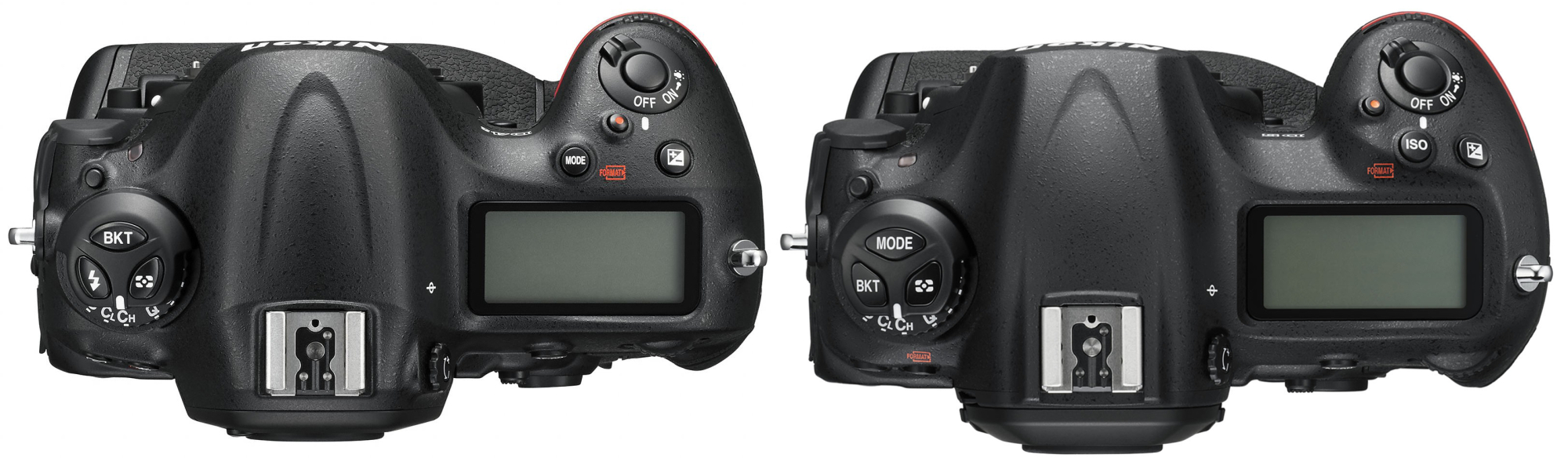 Das Gehäuse der D5 (rechts) hat sich im Vergleich zur D4s (links) nicht grundlegend verändert. Einige Bedienelemente haben aber die Position gewechselt.