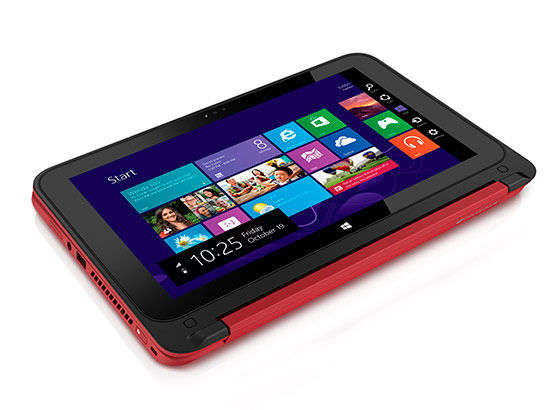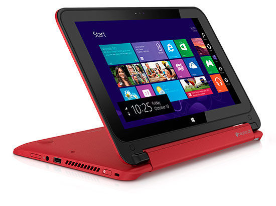 Das Pavilion x360 nutzt das gleiche Scharnierprinzip fĂĽr ein 13,3-Zoll-Display. Es ist in mehreren Farben lieferbar, zu sehen sind aber nur silbern und rot. Es ist mit AMDs A6 und A8 ab 630 US-Dollar lieferbar und mit Intels Core i3 und i5 ab 600 US-Dollar.