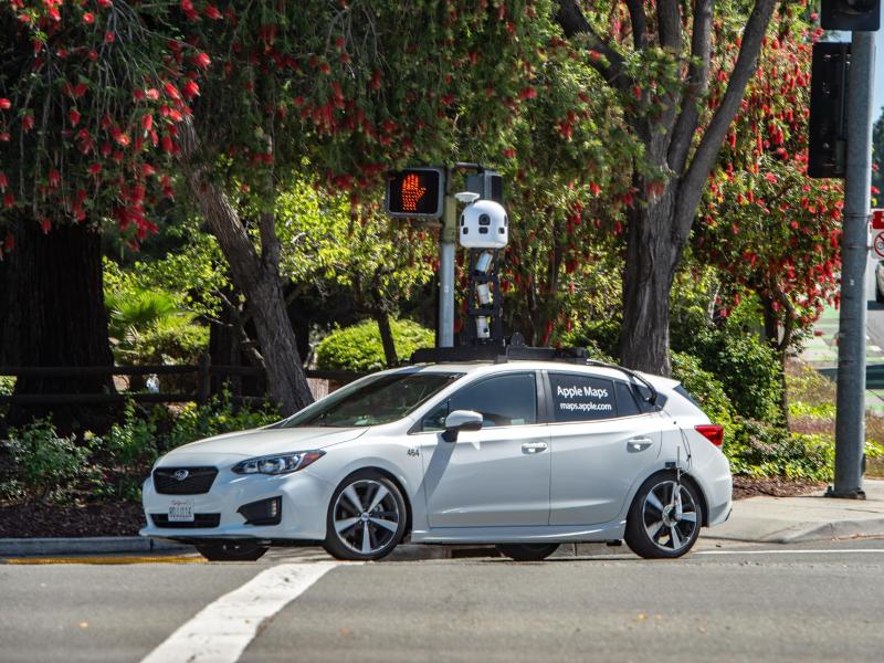 Ein Kamerafahrzeug von Apple macht Aufnahmen fĂĽr den Kartendienst Umsehen ("Look Around").