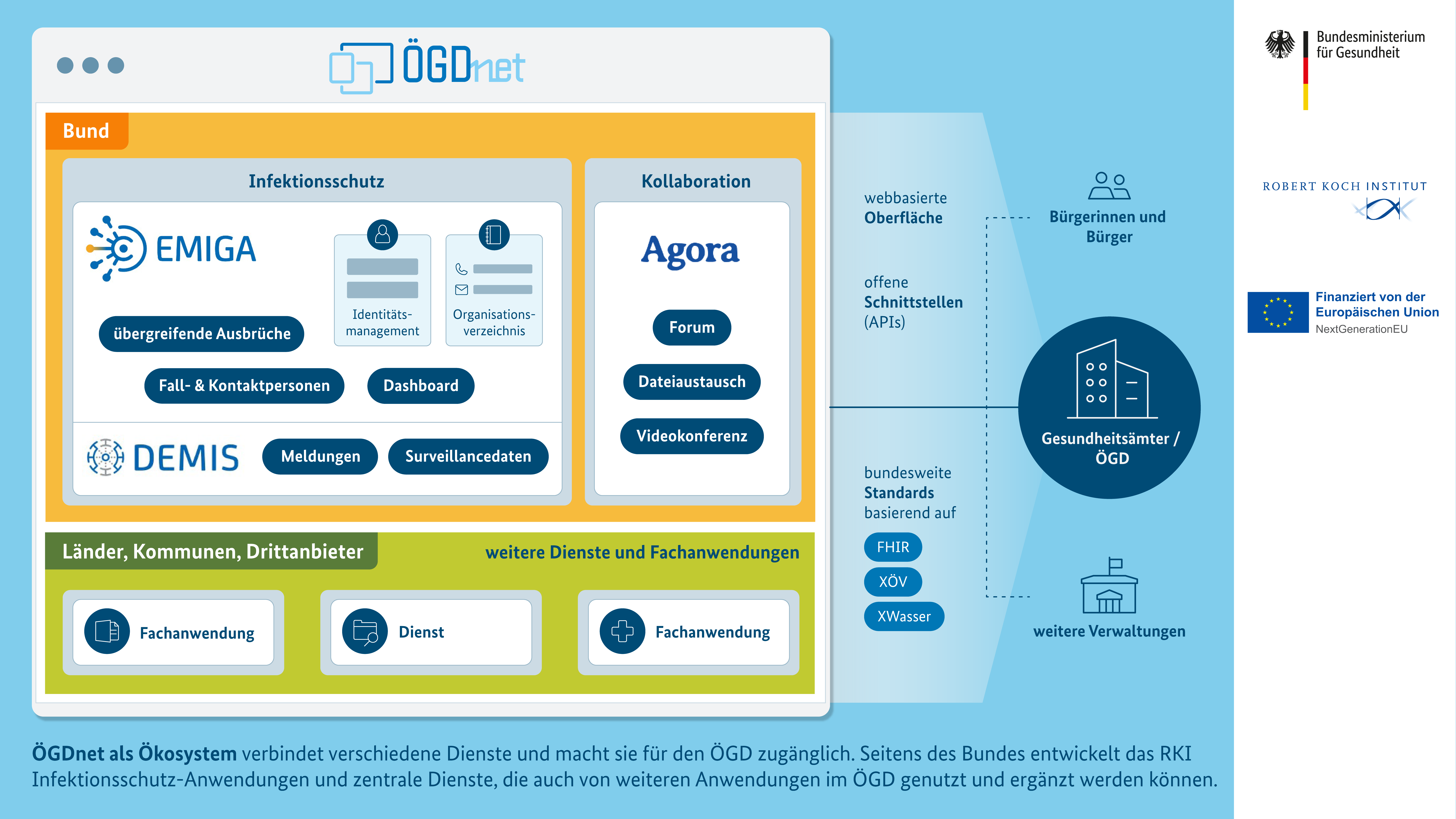 Krankenhäuser sind seit 2022 zur Nutzung einer DEMIS-Schnittstelle verpflichtet. Ende Februar hatte das RKI auch über das Elektronische Melde- und Informationssystem für Gesundheitsämter (EMIGA) informiert, das, wie DEMIS, Teil einer modularen IT-Plattform für den öffentlichen Gesundheitsdienst (ÖGDnet) ist. Das soll für einen medienbruchfreien Datenaustausch sorgen und die Betriebsaufwände in den Gesundheitsämtern reduzieren.
