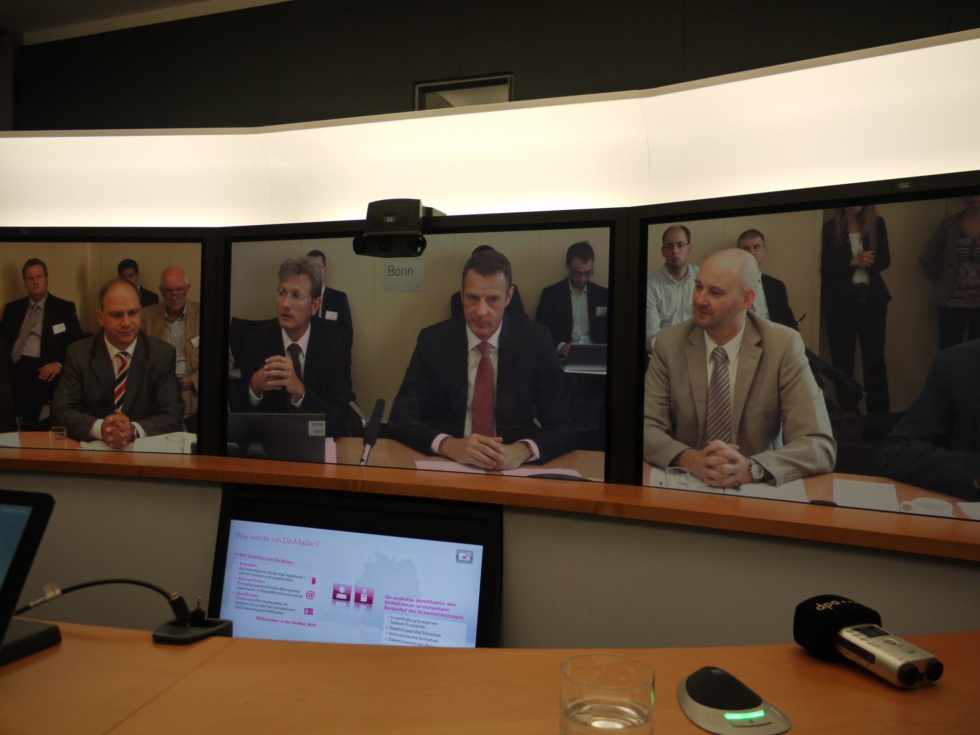 Am 31. August soll der De-Mail-Dienst in Betrieb gehen. Bei der Pressekonferenz zur Einführung zeigte sich die Telekom zuversichtlich, die E-Mail damit bald ablösen zu können. Zwei große Unternehmen als Startkunden waren auch mit an Bord.