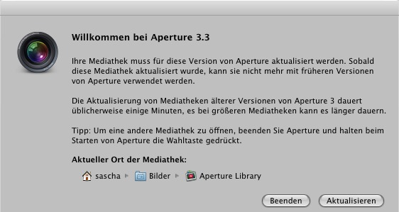 Einheitliche Mediathek für iPhoto und Aperture. Die augenfälligste Neuerung zeigt sich beim ersten Start: Apple hat die Struktur der Mediathek überarbeitet, vorhandene Mediatheken passt Aperture 3.3 automatisch an. Dann steht einer parallelen Nutzung von iPhoto und Aperture nichts mehr im Weg. In den Vorversionen war das noch strikt getrennt.