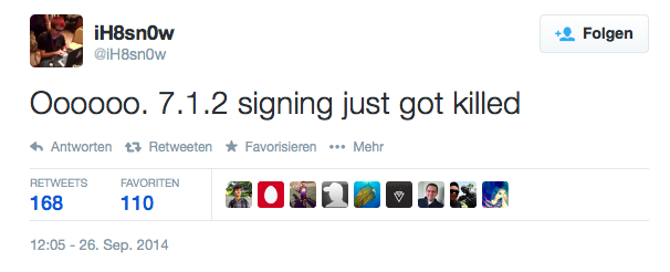Der Schritt, iOS 7.1.2 nicht länger zu signieren, ist kein ungewöhnlicher: Nach Veröffentlichung neuer Betriebssystemversionen stellt Apple regelmäßig nach einem gewissen Zeitraum das Signieren von älteren iOS-Versionen ein.