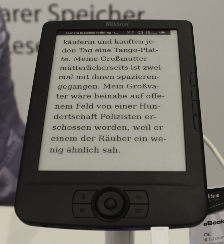 [Update 2.9.2012 12:42 Uhr] Ergänzt wurde der Hinweis, dass der Trekstor Pyrus Wifi laut Pressestelle anders als am Stand angegeben nicht über ein E-Ink-Display verfügen soll. (acb)