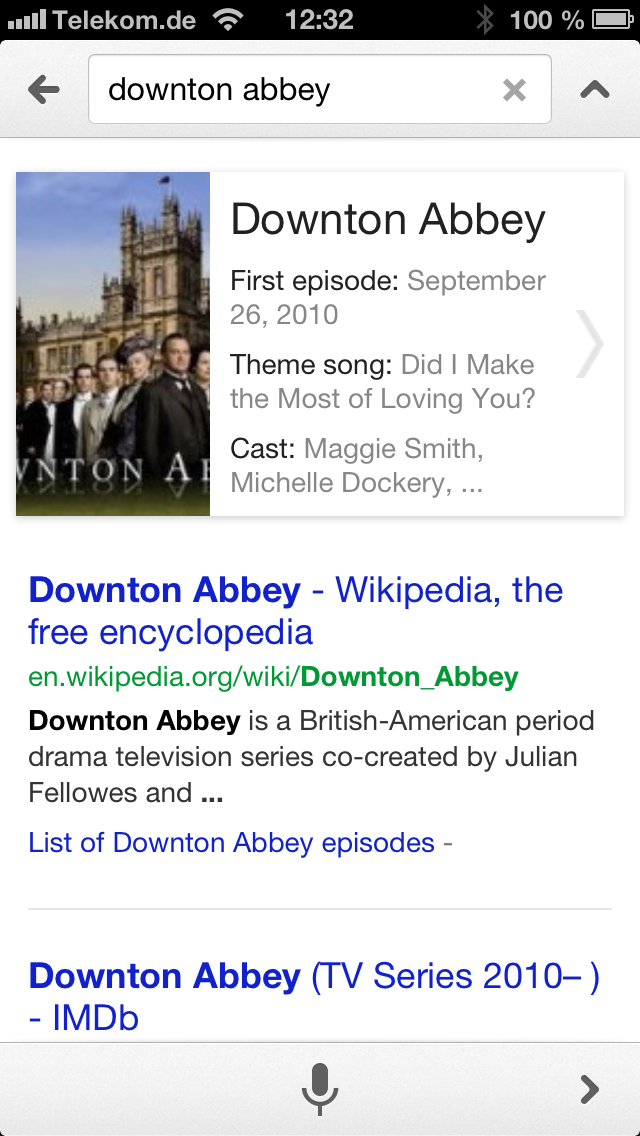 Google benutzt offenbar die Autokomplettierung, um eingesprochene Begriffskombinationen leichter zu erkennen. Die App zeigt zudem keine großen Probleme beim plötzlichen Sprachwechsel, also beispielsweise der Suche nach Filmen mit einem englischen Schauspieler – hier scheitert Siri oft konsequent.