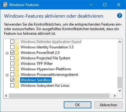 Die Windows-Sandbox steht – wenn sie nicht gerade aufgrund des aktuellen Bugs funktionsunfähig ist – allerdings nur in den Pro- und Enterprise-Versionen von Windows 10 Version 1903 zur Verfügung und muss als separates Feature zum Betriebssystem hinzugefügt werden.