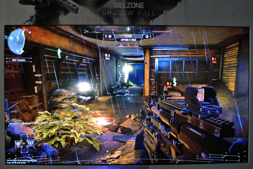 Der Ego-Shooter sieht mit seinen bunteren Farben und Rendering-Tricks nicht nur klasse aus, sondern läuft auch sehr geschmeidig und lässt sich butterweich steuern. Die Entwickler von Guerilla rendern das Spiel in Full HD und peilen eine Framerate von 60 fps an. "Wir hätten es auch auf 30 fps auslegen und noch mehr Makeup auftragen können, aber uns war das Spielgefühl wichtig", erklärten die Holländer. Killzone soll keine reine Grafikdemo der PS4 werden, sondern Spieler langfristig bei der Stange halten. Im Vergleich zu Killzone 3 soll die Solo-Kampagne noch umfangreicher ausfallen. Sie verläuft nicht mehr linear, sondern gibt dem Spieler die Wahl, in offeneren Leveln verschiedene Missionen anzunehmen. Für Multiplayer-Partien sind zehn Karten für bis zu 24 Spieler mit dabei. Weitere kostenlose Karten sollen folgen. Die Spielregeln lassen sich nach belieben ändern. Wer nicht so schnelle Reflexe hat, kann auch gegen Bots antreten. Online soll man, wie bereits auf der Pressekonferenz zu sehen war, in wenigen Sekunden in die laufende Partie eines Freundes einsteigen können.