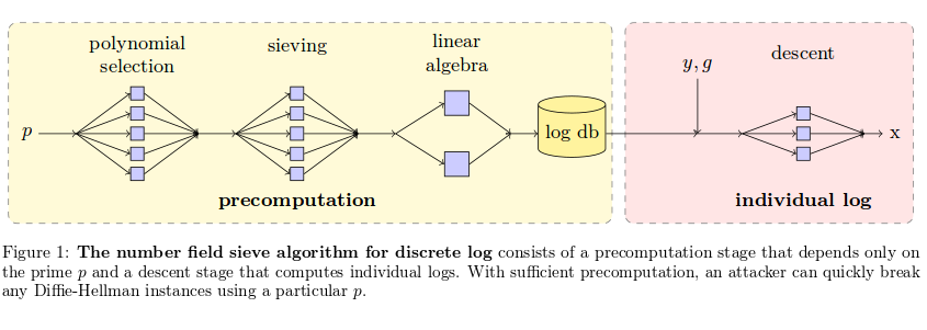 Ein gängiges Verfahren nutzt dafür die Berechnung von diskreten Logarithmen. Arbeitet man hier mit großen Zahlen, wird das Problem so komplex, dass es im Allgemeinen nicht mit roher Rechengewalt zu knacken ist. Wie die Forscher allerdings zeigen, kann man die Rechenaufgabe so zerlegen, dass man den Großteil der Rechenarbeit schon im Vorfeld erledigen kann. Durch die ehemaligen Export-Regeln der US-Regierung für Krypto, die viele Systeme noch heute unterstützen, können Angreifer die Sicherheit der Verbindung downgraden und Server und Client dazu bewegen, die geschwächten 512-Bit-Varianten von Diffie-Hellman zu verwenden.