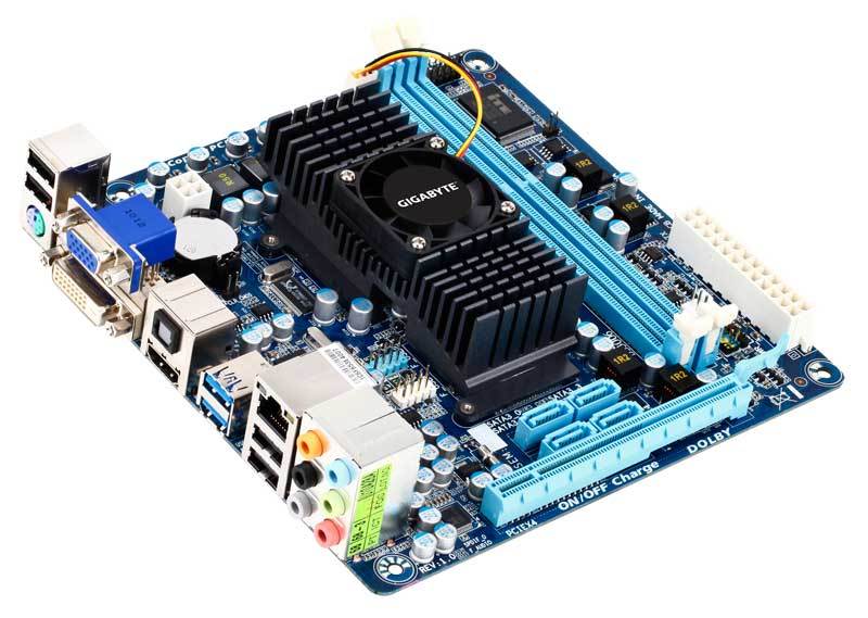 Auf der CES zeigt Gigabyte ein Mini-Mainboard mit dem CPU-GPU-Kombiprozessor AMD E-350. Auch die taiwanische Firma Jetway hat ein "Zacate"-Board im Mini-ITX-Format entwickelt.