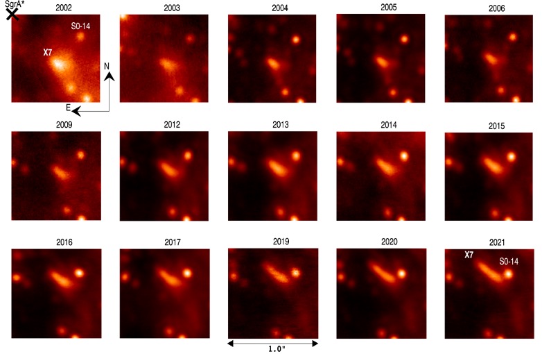Die Forschungsgruppe hat jetzt ermittelt, dass das Objekt wohl bei der Kollision zweier Sterne entstanden ist. Der dabei übrig gebliebene Stern selbst dürfte derweil von Staub umgeben und deshalb nicht sichtbar sein. X7 wiederum sei dabei auf eine Umlaufbahn geschleudert worden, auf der Sagittarius A* einmal alle 170 Jahre umrundet werden würde. Das werde dem Objekt aber wohl nicht gelingen, denn schon um das Jahr 2036 werde es seine größte Annäherung an das Schwarze Loch erreichen und sich dabei auflösen. Die dramatischen Entwicklungen sollen mit dem Keck-Observatorium im Blick behalten und weiter analysiert werden. Die Erkenntnisse zu X7 werden jetzt im Astrophysical Journal vorgestellt.
