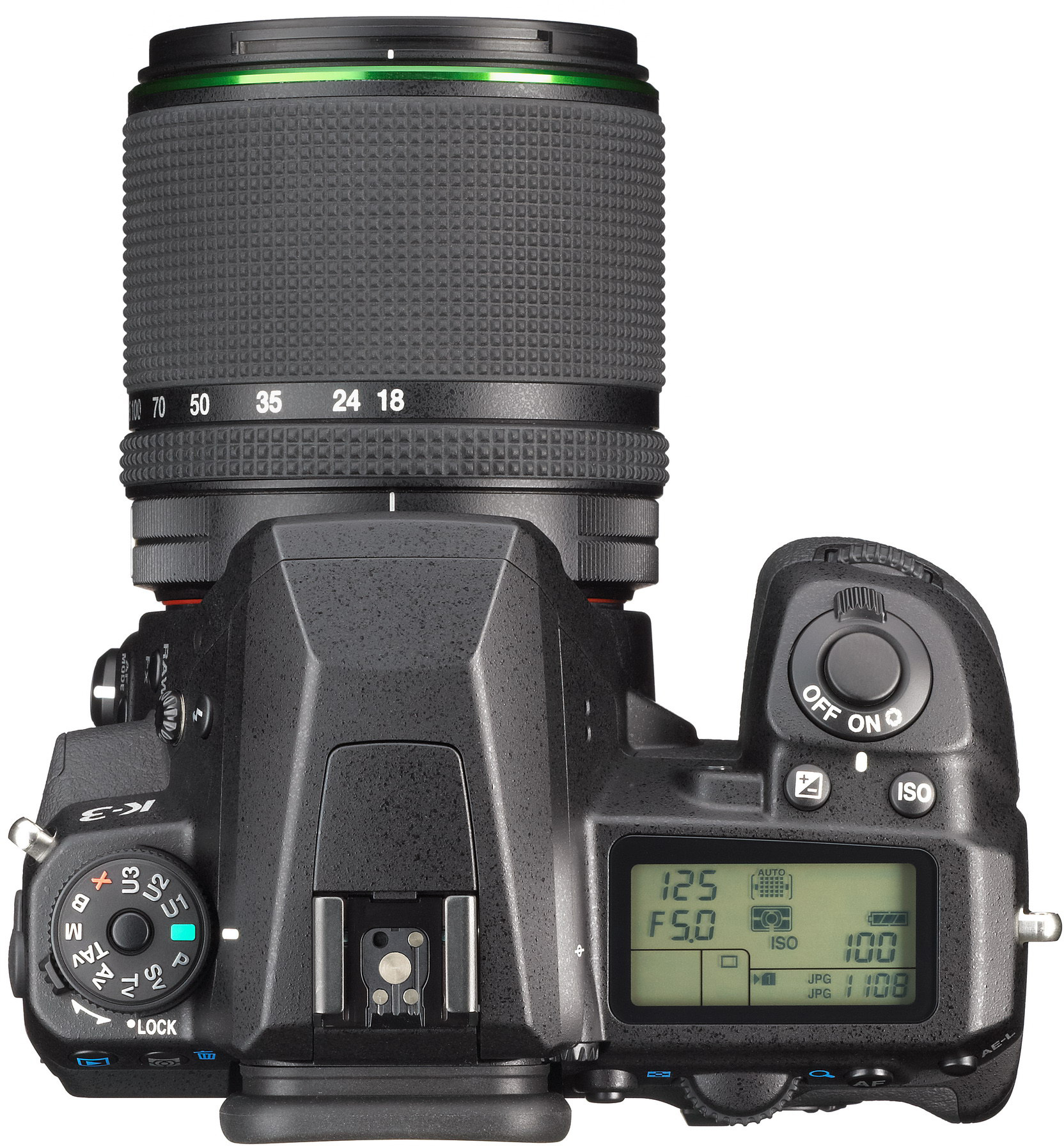 Mit 24 Megapixeln schließt die K-3 zu den Modellen von Nikon und Sony auf. Der neu entwickelte CMOS-Sensor verzichtet dabei auf einen Tiefpassfilter, was sich positiv auf die Bildschärfe auswirkt, jedoch bei feinen, gleichmäßigen Strukturen zu Moiré führen kann. Bei solchen Motiven kann der Sensor in zwei Stufen in Mikroschwingungen versetzt werden, um durch die daraus resultierende Unschärfe die Funktion des Tiefpassfilters nachzuahmen.
