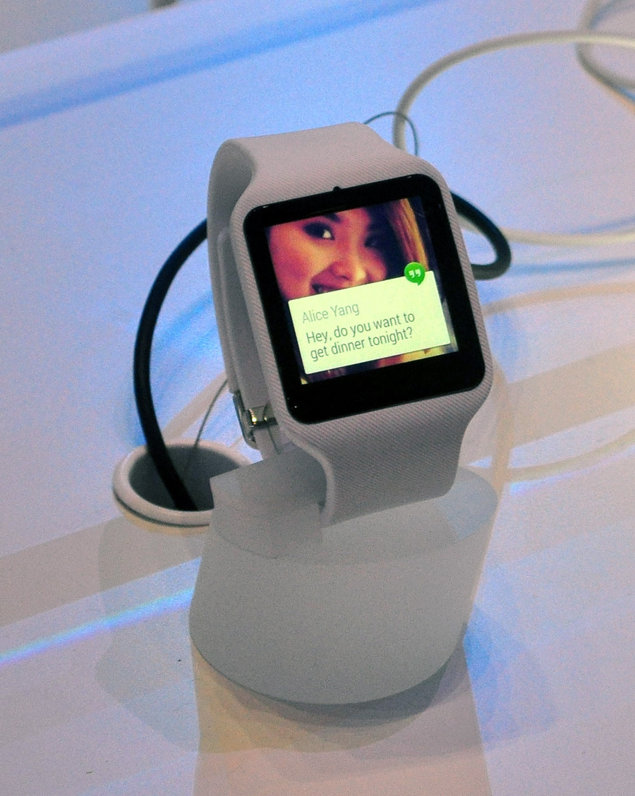 Deutlich konkretere Infos gab es zu den Armgelenks-Wearables SmartWatch 3 und SmartBand Talk – sie sollen im Herbst für 230 beziehungsweise 160 Euro auf den Markt kommen. Die SmartWatch 3 ist allerdings eher klobig als innovativ; handelt es sich dabei doch um eine Android-Wear-Standarduhr ohne besondere Alleinstellungsmerkmale; die beiden SmartWatch-Vorgänger liefen noch mit proprietären Betriebssystemen. Am außergewöhnlichsten sind noch die austauschbaren Silikon-Armbänder und die IP68-Zertifizierung – letzteres bedeutet, dass die Uhr eine halbe Stunde lang untertauchen kann.