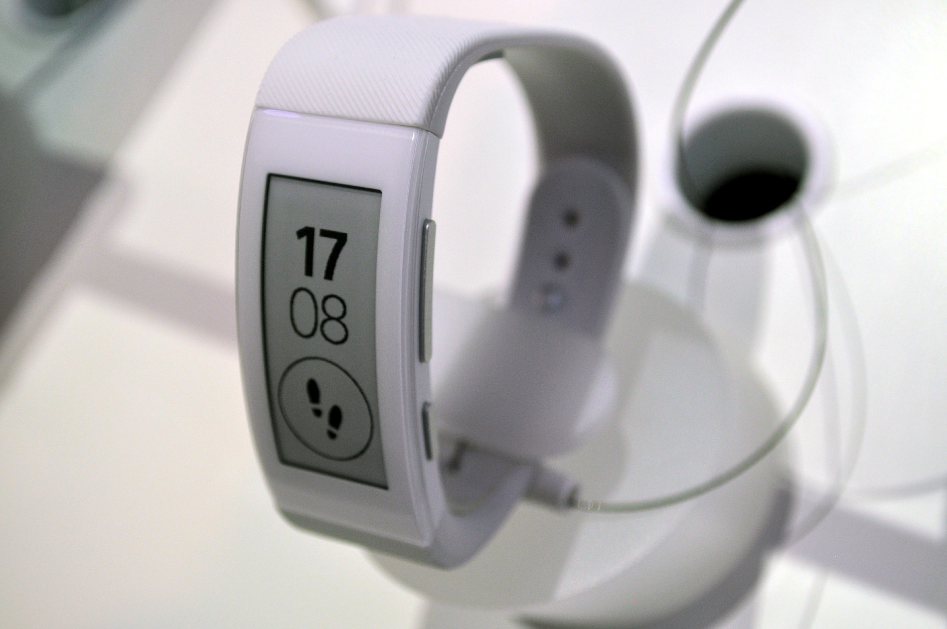 Origineller ist das SmartBand Talk: Es hat ein monochromes 1,7-Zoll-E-Paper-Display (4,31 cm) eingebaut, das tatsächlich wie gedruckt aussieht. Zwischen Knopfdruck und Bildwechsel vergeht allerdings viel Zeit. Dafür kann man per Fingerschnipsen den Musikplayer des per Bluetooth 4.0 gekoppelten Smartphones steuern.