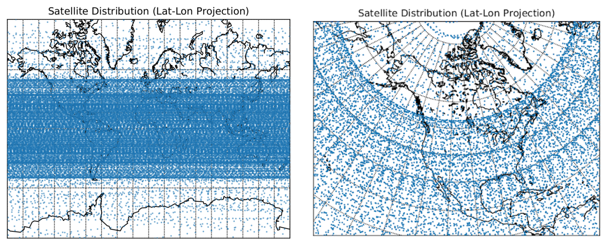 Der Simulation zufolge werde aus verschiedenen Gründen nicht jede Region auf der Erde gleichermaßen von der Lichtverschmutzung der Satellitenkonstellationen betroffen sein. Vor allem in Äquatornähe liegen Satelliten in der Nacht größtenteils im Schatten der Erde, werden also nicht sichtbar sein. Weiter nördlich (beziehungsweise südlich) bleiben Hunderte Satelliten aber sogar gegen Mitternacht über der Sichtbarkeitsgrenze des menschlichen Auges. Das könnte demnach aber durch höhere Orbits zumindest minimiert werden. Die schwerwiegendsten Auswirkungen hätte das demnach für Observatorien in Kanada (und Mitteleuropa). Aber auch in Chile – wo die Europäische Südsternwarte ihren Standort hat – wären teilweise Hunderte Satelliten gleichzeitig angestrahlt.