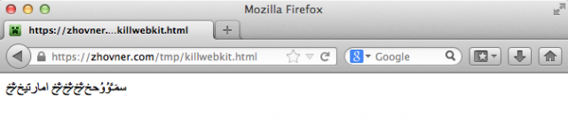 Ein Renderingfehler führt in Safari und anderen Apps unter OS X 10.8.4 und iOS 6.1.3 dazu, dass die schlichte Anzeige bestimmter arabischer Schriftzeichen einen Crash auslöst. In iOS 7 und OS X 10.9 soll das Problem bereits behoben sein.