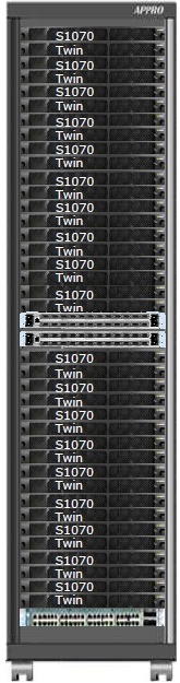 Appro bietet beim HyperPower-Cluster bis zu 78 TFlops in einem einzigen Rack. Die Maximalbestückung besteht dann aus jeweils 19 Tesla- und Xeon-Einschüben samt den nötigen Infiniband-Switches, die zusammen bis zu 32 Kilowatt Leistung ziehen. Es stehen dann 76 GPU-Chips (mit zusammen 18.240 Shader-Kernen beziehungsweise 570 SIMD-Einheiten) und 76 Quad-Core-CPUs (mit 304 Kernen plus Hyper-Threading) bereit, denn Appro setzt 1-HE-Einschübe mit je zwei Dual-Socket-Mainboards ein. Die CPUs liefern ein theoretisches Maximum von zusammen 1,78 TFlops an Dual-Precision-Rechenleistung; jede GPU schafft im optimalen Fall 1,035 TFlops in einfacher Genauigkeit (Single Precision) – alle zusammen eben 78 TFlops. Die Dual-Precision-GPU-Rechenleistung beziffert Appro mit 6,56 TFlops. (ciw)