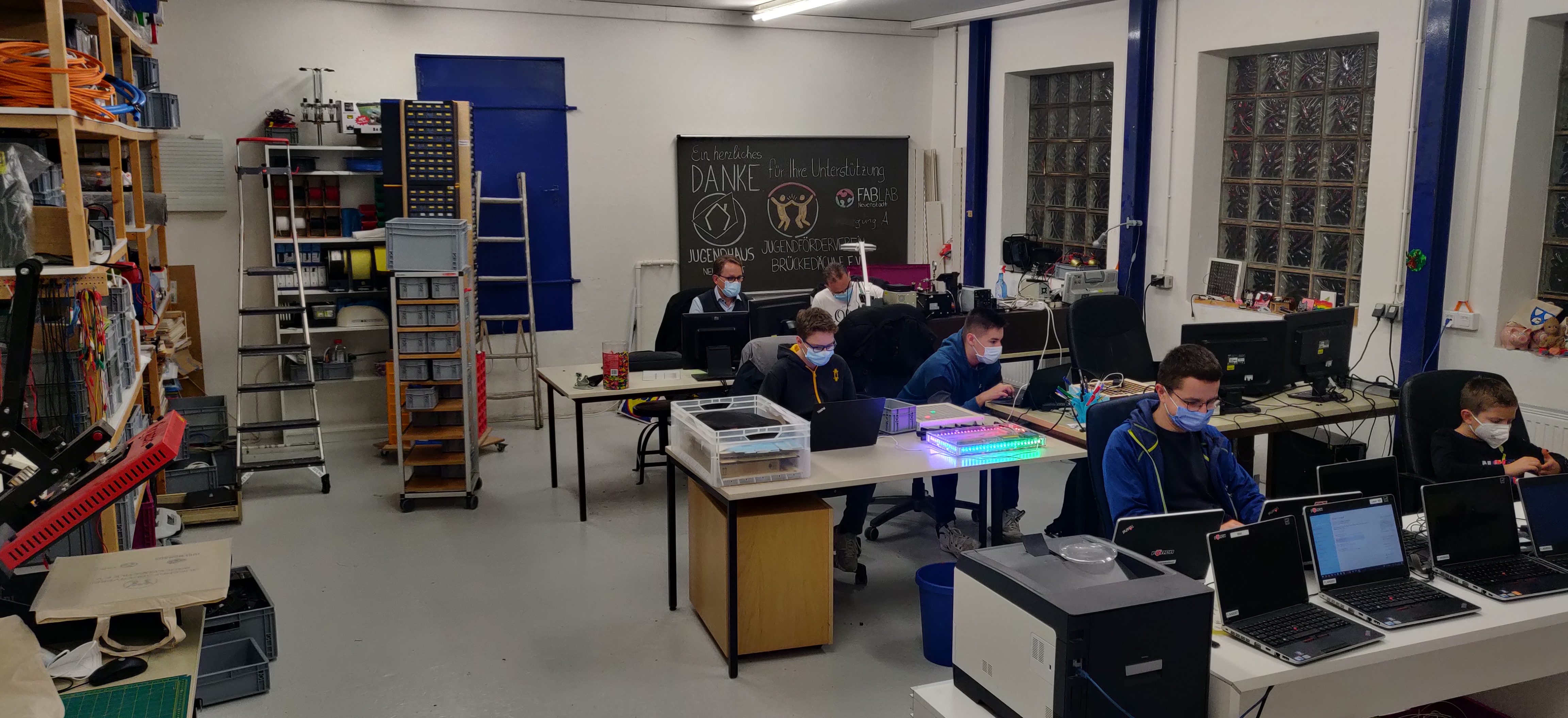 Einsatzbereit sind außerdem die 3D-Drucker, von denen einer im Space wieder zum Laufen gebracht wurde. Als weitere Anschaffungen sind ein Lasercutter, eine CNC-Maschine und ein Lora-Gateway in der Planung. Für kreative Aufgaben ist schließlich noch ein Wandplotter in Arbeit, der bis zu 8 x 3 Meter große Leinwände abdecken soll. Jeden Mittwoch und Freitag abend wird weiter an der Ausstattung und den Projekten gearbeitet, wobei der Fokus auf Spass und der gemeinsamen Zeit liegt.